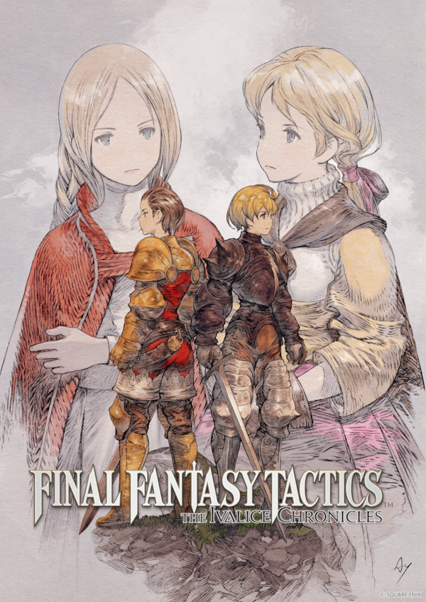 Square Enix also revealed the new key art of Ramza and Delita, the two heroes of this story, drawn by Akihiko Yoshida. The art depicts the complex relationship of the two individuals – whether they stand together to protect one another, or the start of a departure as they walk divergent paths. Above them, Ovelia and Alma, both of whom have strong ties to Ramza and Delita, solemnly look into the distance, foreshadowing the direction that fate will lead them.