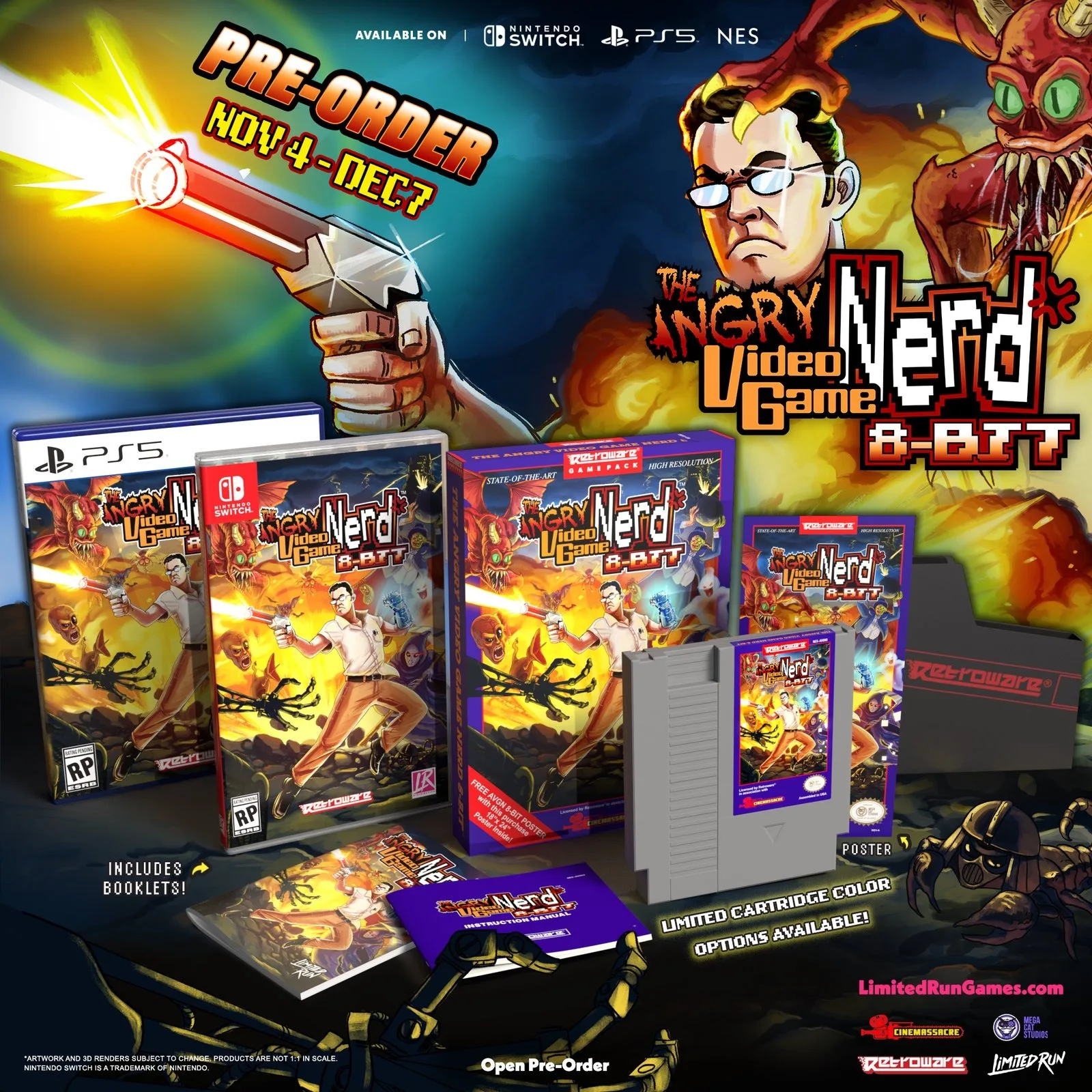 Fans of The Angry Video Game Nerd have been eagerly awaiting news about the physical editions of The Angry Video Game Nerd 8-Bit, and today, Retroware is excited to share the news. During today’s Limited Run Games LRG3 broadcast, the forever physical publisher announced that pre-orders for the Nintendo Switch and PlayStation 5 versions of The Angry Video Game Nerd 8-Bit, which released digitally on consoles and current-gen platforms on October 22, will open on Tuesday, November 4, and remain available through Sunday, December 7.