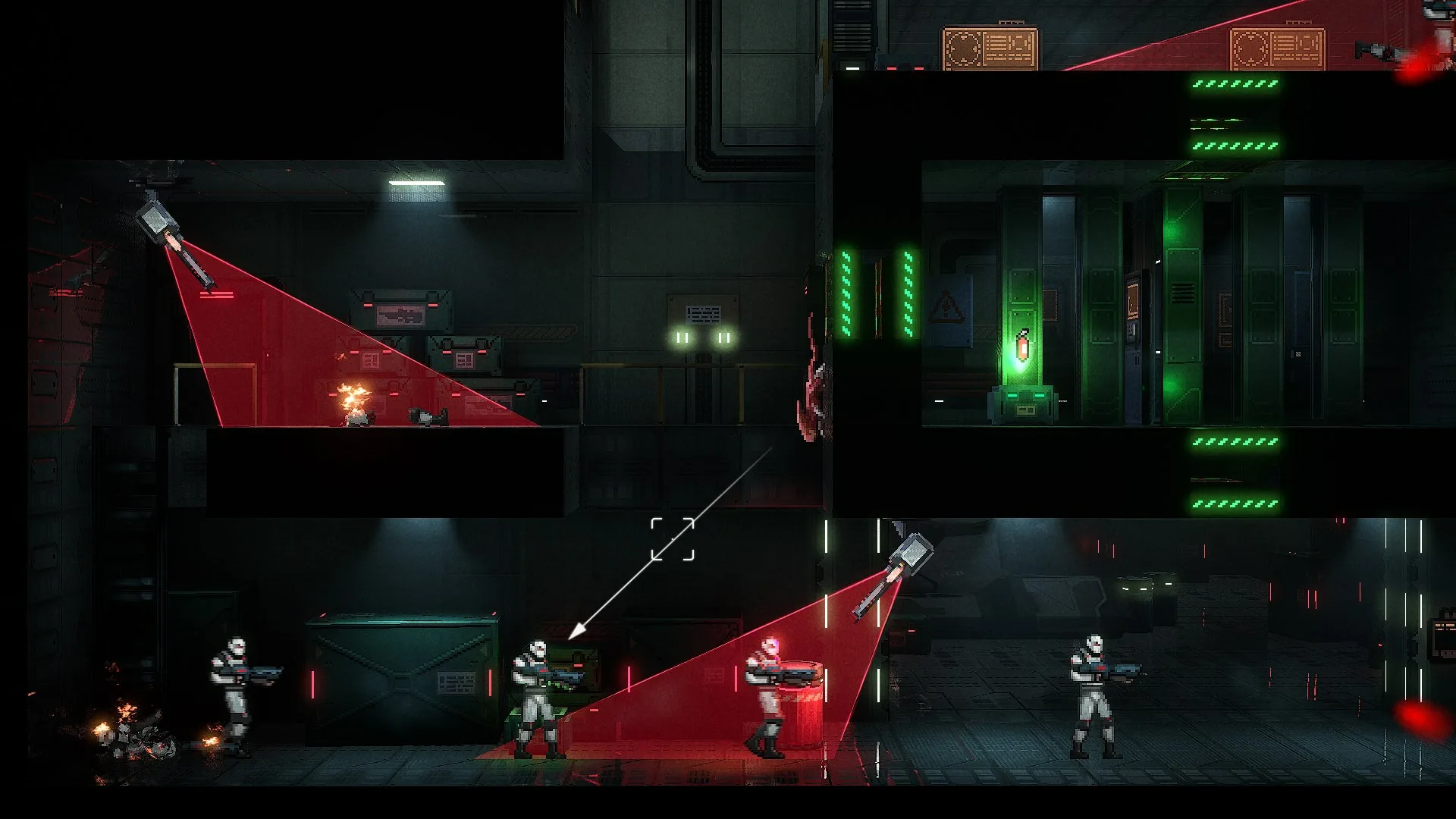 In ION Shift, you take on the role of an alien creature that is similar to a Xenomorph imprisoned aboard a hostile spaceship. Your objective is to survive. As you navigate the corridors, you will face patrolling soldiers, turrets, and laser drones and many other traps that demand split-second reactions and careful planning. The spaceship itself is more than a backdrop. The story is barebones and just explains why the alien is on the ship and why certain mechanics get introduced. Essentially each level is designed to encourage, improvisation, and strategic decision making. Many combat zones function like sandboxes where the player can choose how to handle each encounter with a few factors that are certain like instant death. There are plenty bad guys to take care of as well as turrets and other snags to stop you going straight through.