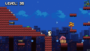 As seems to be the norm in these smaller, indie games, there’s only one jingle playing throughout. With no variety in the music whatsoever. Mel makes a ‘Mario-style’ noise when they leap and the boost makes a weird clicky sound when used and you get a ‘bling’ sound effect when you exit the level. And that’s all the sound effects you’re getting from this title. At least the background changes every 10 Levels to signify moving onto another world, which is a nice change from so many other small games such as this.