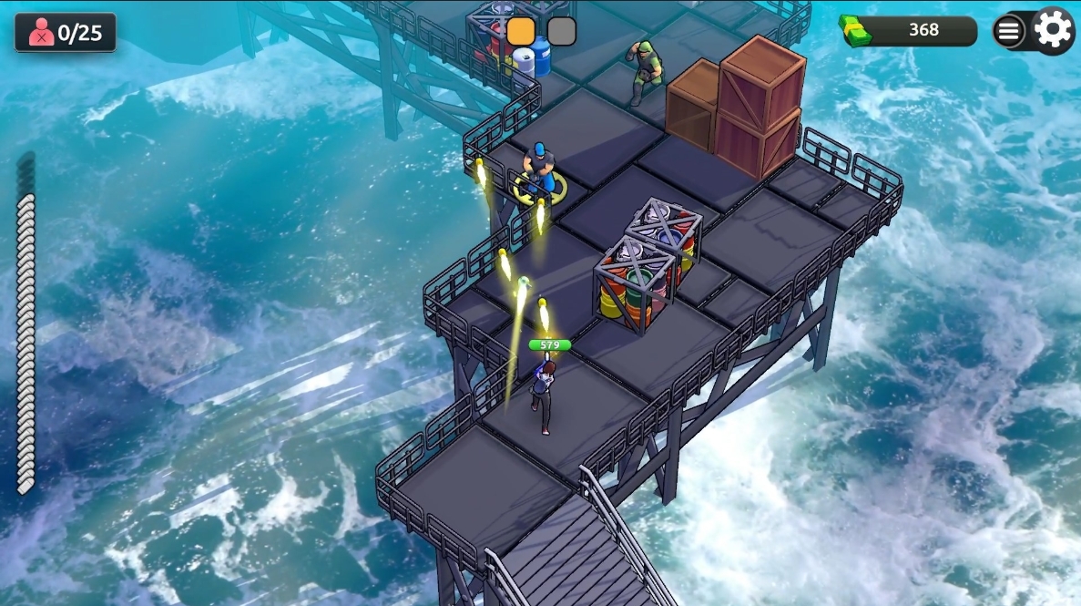 Enemies appear on screen, and you’ll need to utilise cover to dodge their weaponry whilst counteracting with your own. Working through the levels will grant you experience, which will level you up alongside gold and loot chests. The better your stats, the more you can upgrade and unlock and in turn, become more powerful.